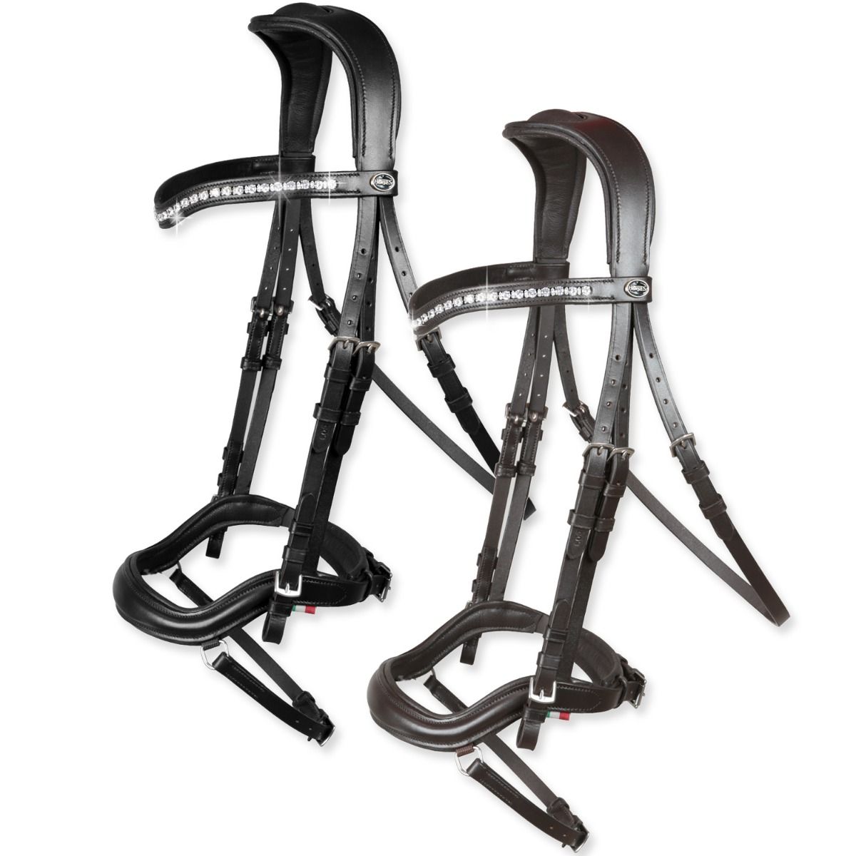 Vyrobeno z velmi kvalitní a měkké italské kůže. Uzdečka je navržená tak, aby se lépe přizpůsobila tvaru koňské hlavy a působila na nebolestivé body a tím zvyšovala pohodlí. Nánosník a nátylník jsou vypodložené a měkké. Nátylník má více čalounění uprostřed. Čelenka je ozdobena proužkem průhledných lesklých kamínků.