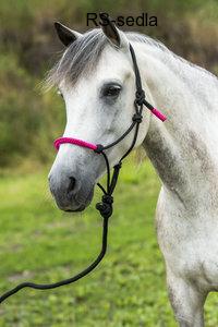 Parely ohlávka vyrobená z polypropylenu s ozdobným a dvojitným barevným opletem na nánosníku. Vodítko měří 2,3m.