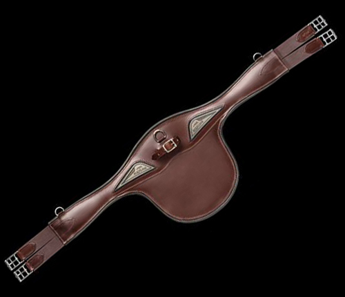 Podbřišník je měkce podložený, je vyroben z kvalitní italské kůže od prémiového výrobce Equiline. Kůže je velmi kvalitní, kožená podšívka leathertex,je neuvěřitelně měkká a vhodná i pro velmi citlivé koně. Tři očka pro snadnější uchycení martingalu i pomocných otěží. Anatomický tvar pro pohodlí a volnost pohybu, dotahovací gumy na obou stranách. Pochromované kování.