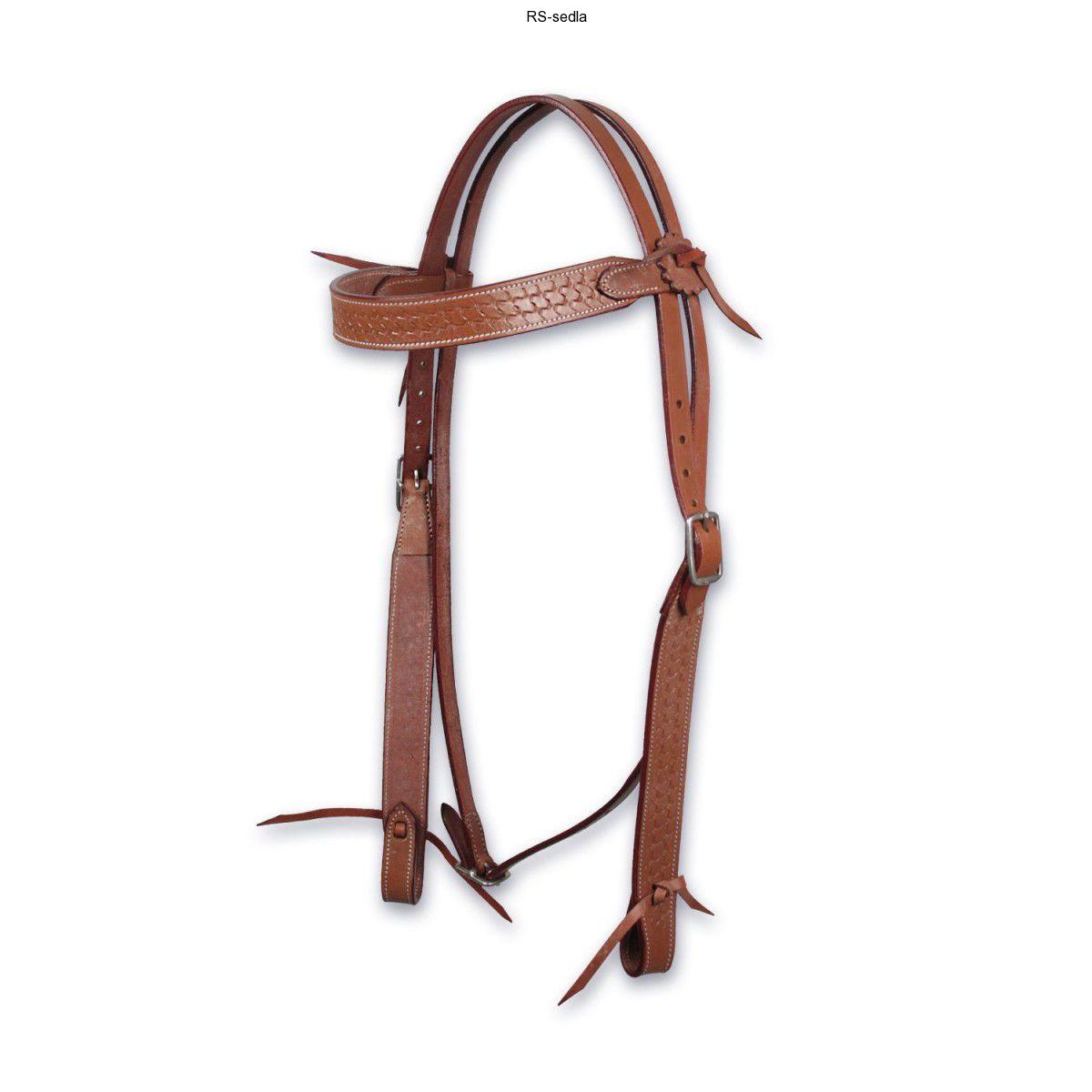 Vyrobená z odolné kůže. Na čelence a lícnicích broušený vzor a kontrastní prošití bílou nití.