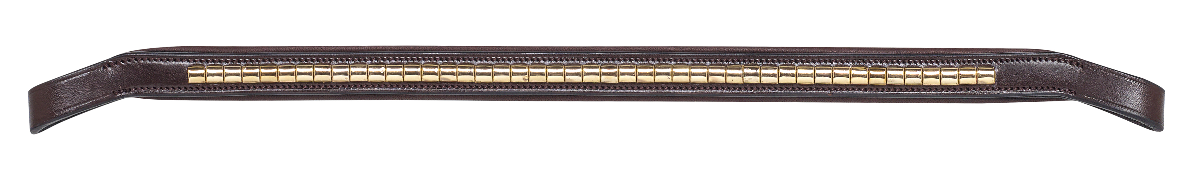 Kožená čelenka Equiline se zlatými kovovými válečky. Kvalitní zpracování. Velikosti: cob, full Barvy: hnědá, černá celý popis