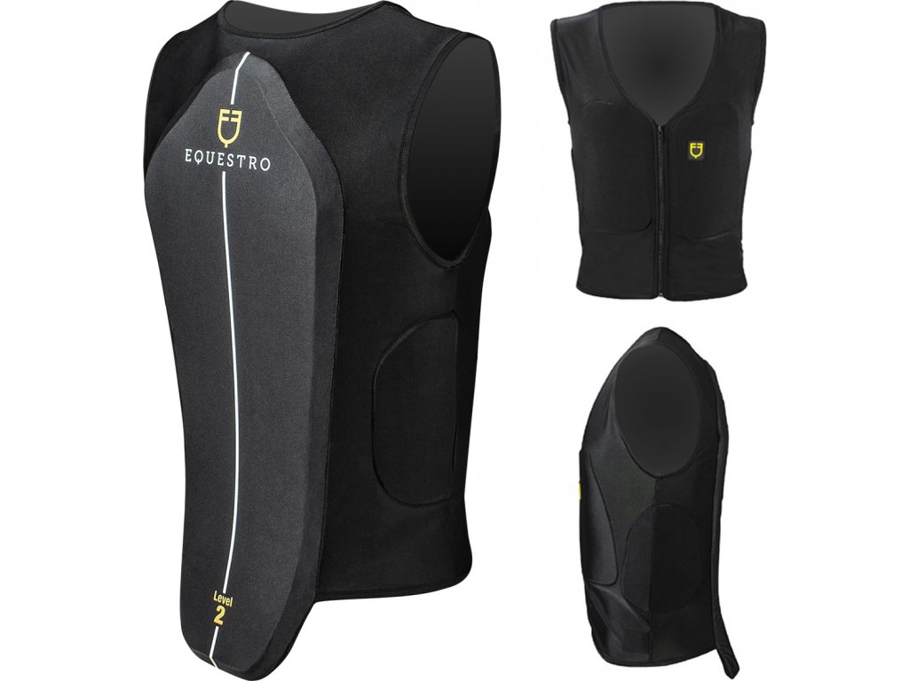 Kvalitní chránič páteře ze speciální 3D tkaniny S.R.T. (Sweat Removing Textile), která je vysoce prodyšná a skvěle odvádí potVnitřní polstrování vyrobeno z E.V.C. (Evoluted Viscoelastic Cells), voděodolné protinárazové pryže. Chránič je extrémně lehký, flexibilní a prodyšný. Vybaven čtyřmi speciálními vycpávkami (dvě vpředu a dvě po stranách), které perfektně tlumí nárazy a poskytují tak další ochranu. Dosahuje úrovně 2 dle EN1621-2. Snadno se obléká a sundává díky praktickému přednímu zipu. Zdoben logem Equestro na přední a zadní straně.
