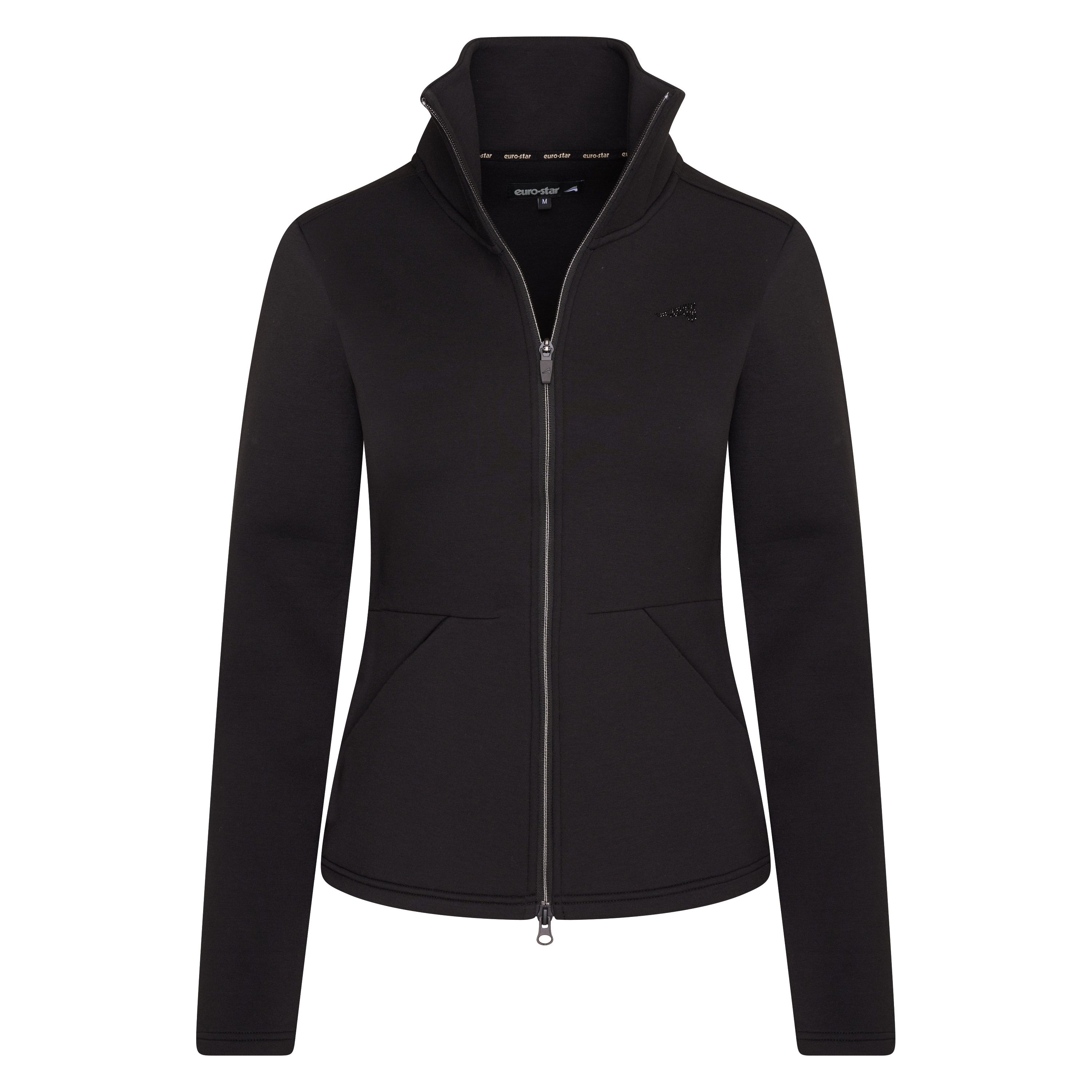 Mikina ve sportovním stylu s 2-cestným zipem vpředu a s elastickou značkovou vsadkou Euro-star na bocích. Dvě boční kapsy, vysoký límec. Značka Euro-star na levé straně hrudníku.