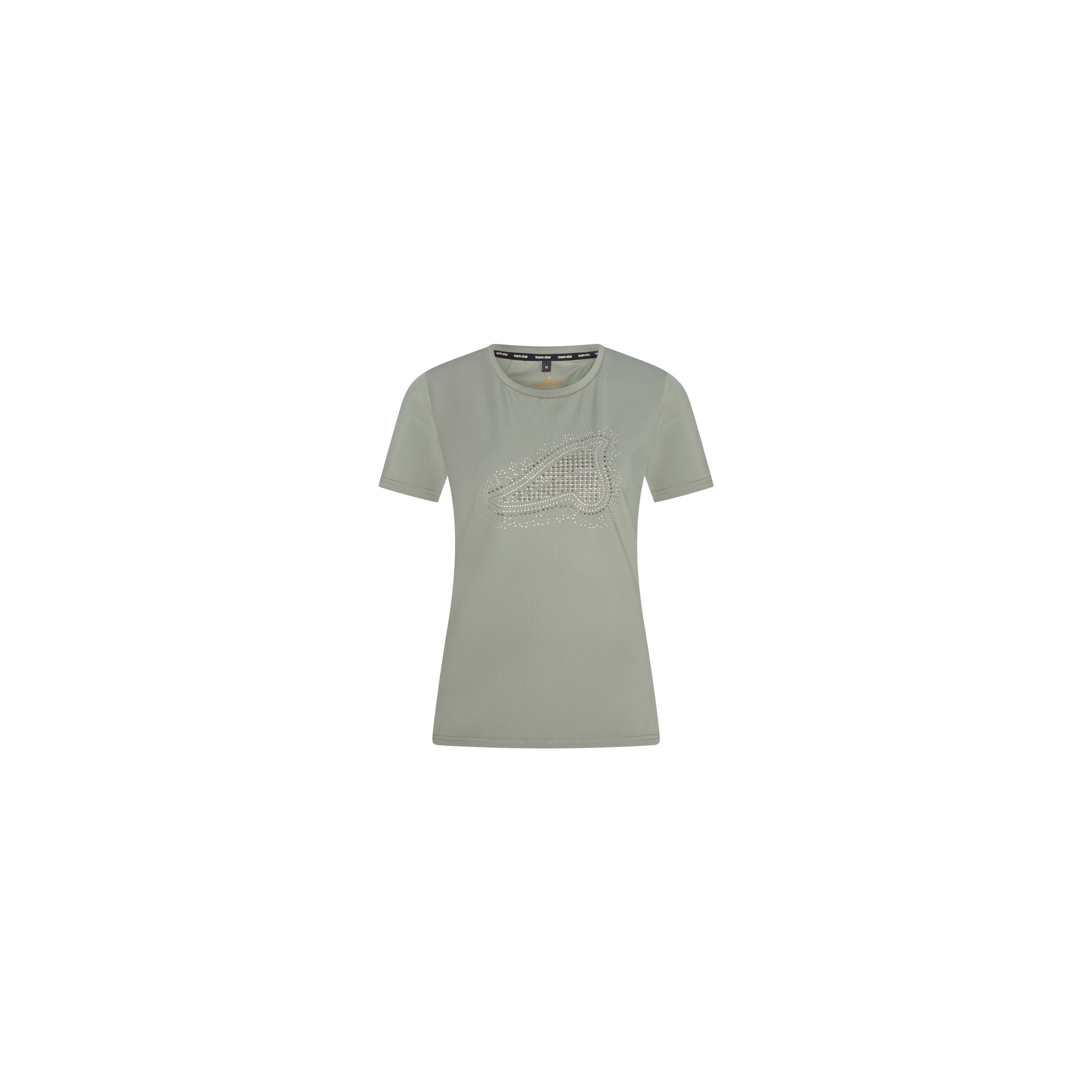 Dámské triko MIRELLA.- na přední části ozdobný ornament z kamínků - krátký rukáv- vytvarované bokyMateriál: 82% polyester, 18% elastanBarva: růžová, tmavě fialová, šedá, černáVelikosti: XS, S, M, L, XL, XXL celý popis