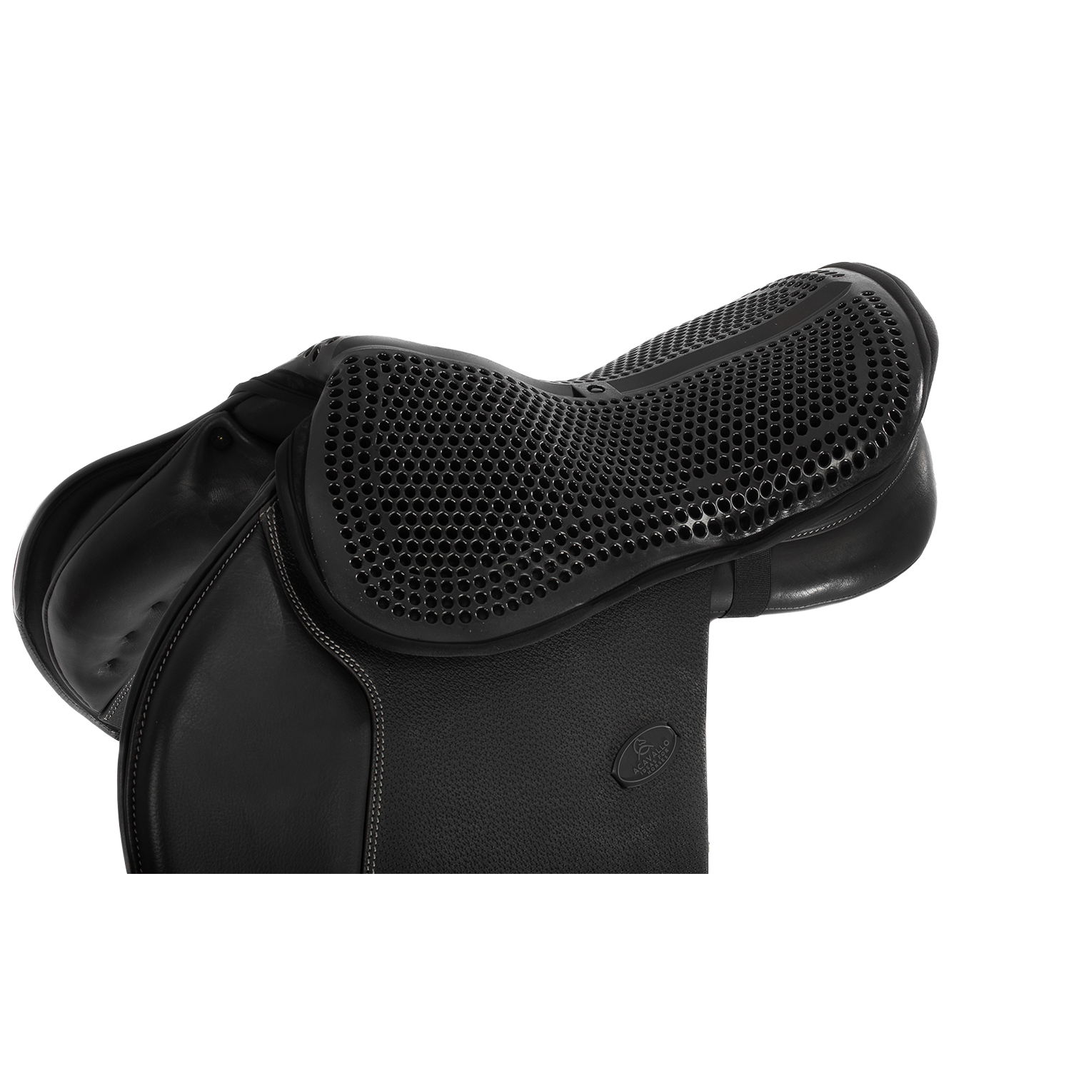 Gelový potah na skokové sedlo, podporuje vrchní část těla jezdce, stabilizuje sedací kosti a zmírňuje otřesy působící na bedra, pomáhá dosáhnout hlubokého a stabilního sedu, zajišťuje bezpečnost a komfort, s unikátní prodyšnou strukturou. Gel je zvenku a přímo v kontaktu s rajtkami pro pevný a stabilní sed bez prokluzu- oblíben převážně začátečníky. Tloušťka gelu je 20mm, snadno se přizpůsobí jakémukoli sedlu. K dispozici ve dvou velikostech.
