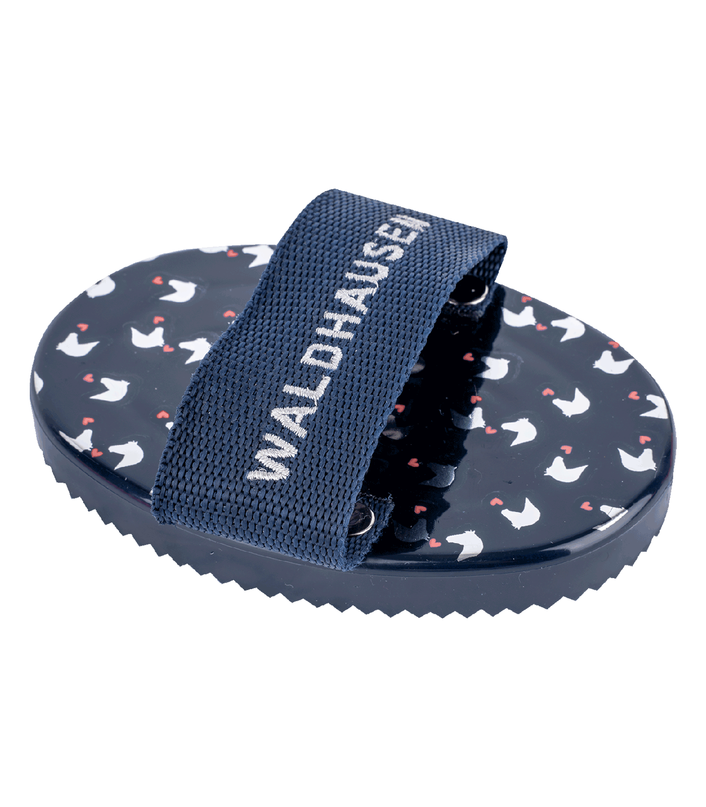 Malé hřbílko z tvrdého plastu, které ladí s dětskou kolekcí LUCKY. Kůň se jím hřebelcuje krouživými pohyby, slouží k odstranění prachu, srsti a bahna. Během čištění se pokožka koně též promasíruje a prokrví.