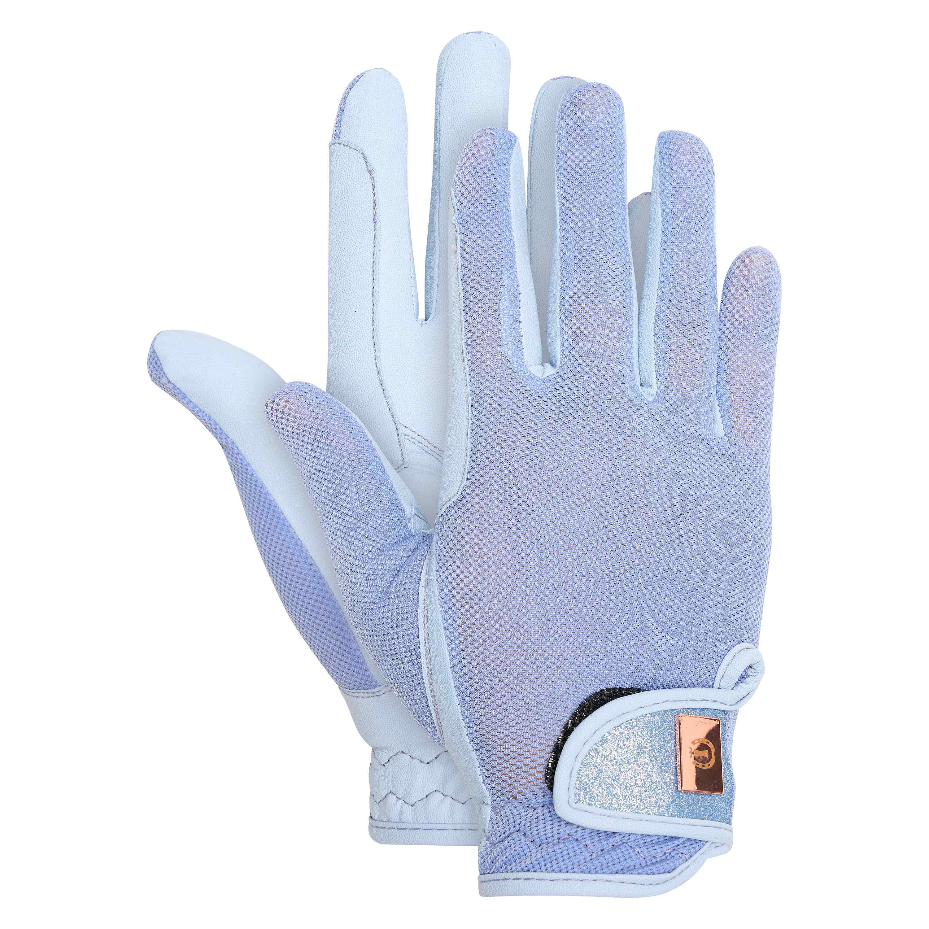 Síťované žerzejové rukavice * podyšné * rychleschnoucí * dlaň z umělé kůže * elastické kolem zápěstí * velcro zapínání * zapínání zdobeno třpytkama * kovový znak IR na zapínání