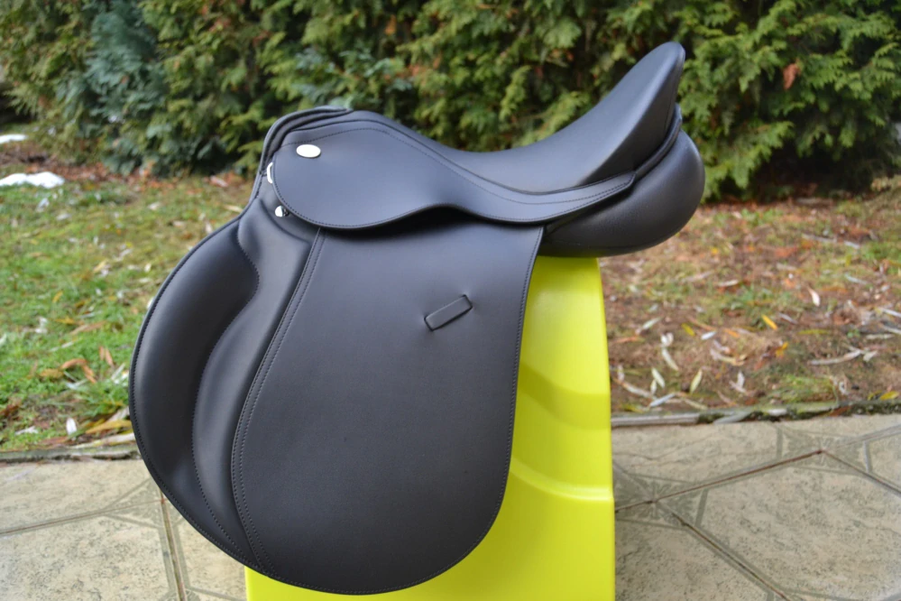 Nové sedlo univerzální sedlo s možností úpravy šíře komory. Posedlí 17, komora 3-4, vlněný polštář. Záruční list.