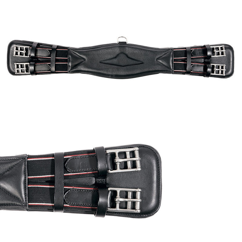 Kožený podbřišník vyrobený ze speciální vyčiněné měkké kůže a nylonovou vložkou. Anatomicky tvarovaný. Elastické gumové zakončení a přezky z nerezové oceli na obou koncích, 3 kroužky pro upnutí poprsníku nebo pomocných otěží.