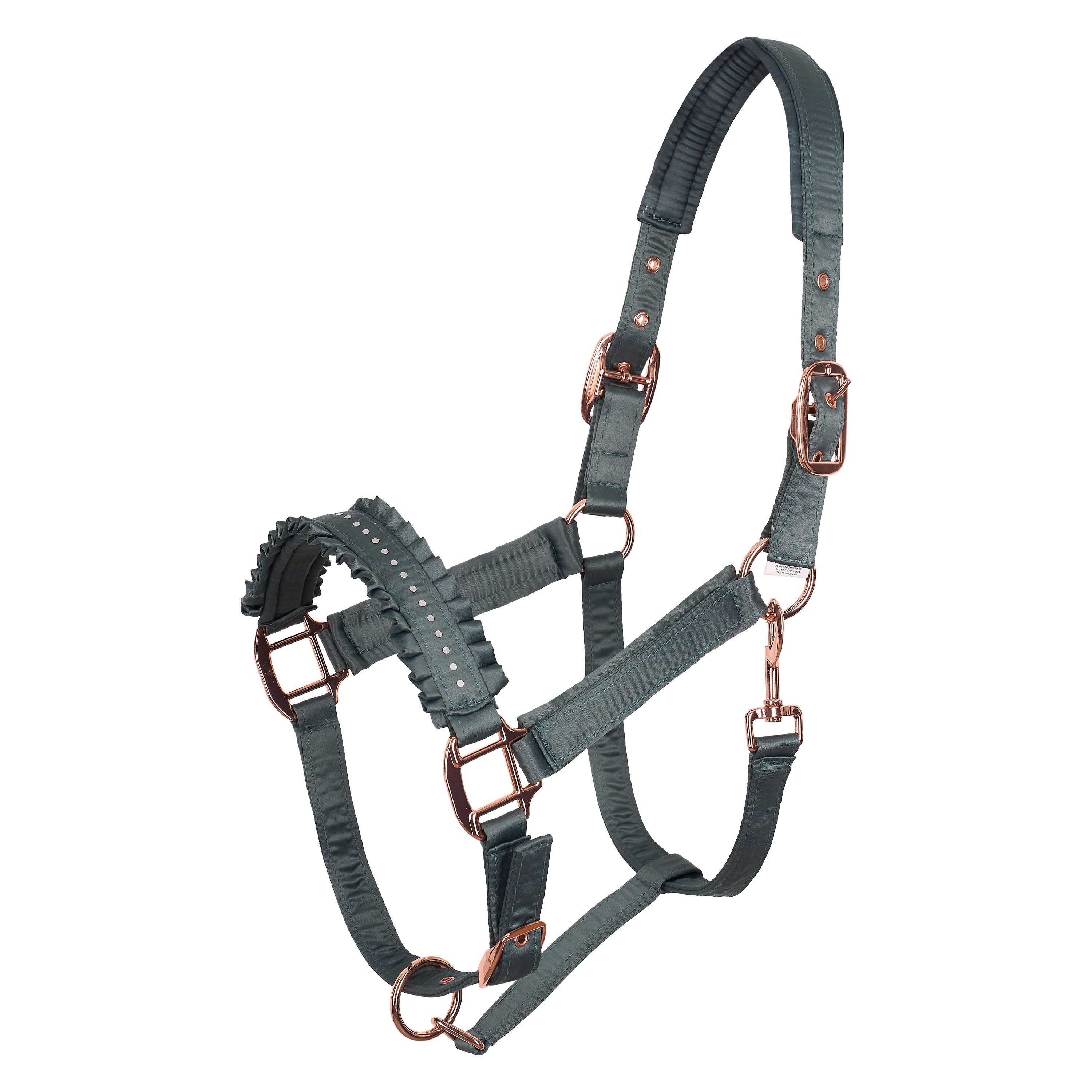 Ohlávka LOVELY.- nánosník má volánky v kombinaci s potiskem kamínkůMateriál: 100% polyester - saténBarva: růžová, modrá, světle šedá, tmavě šedá, hnědá, capuccino, černáVelikosti: Pony, Cob, Full celý popis