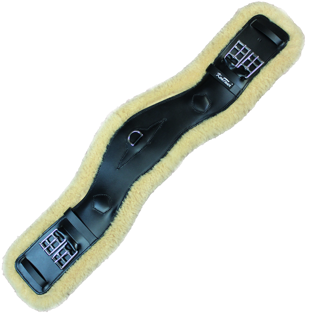 Anatomický kožený drezurní podbřišník s oboustrannou gumou a polstrováním z medicinální skopovice.