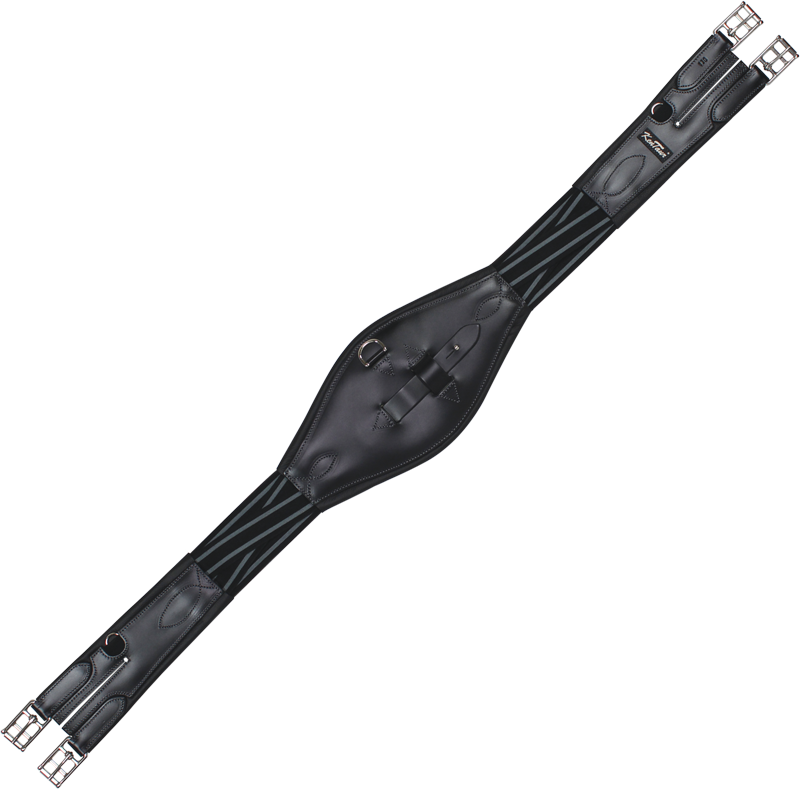 Kožený podbřišník s oboustrannou gumou a rozšířeným středem.
