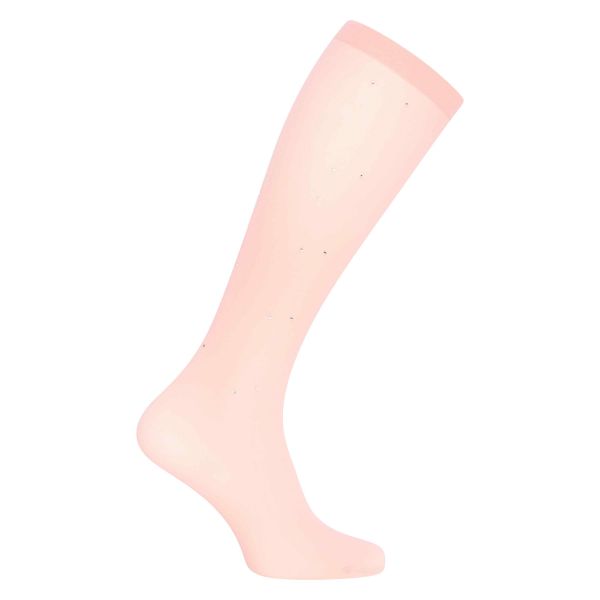 Lehké jemné podkolenky s celoplošným kamínkovým zdobením. Měkká kvalita. Kovový přívěsek IR nahoře na okraji.