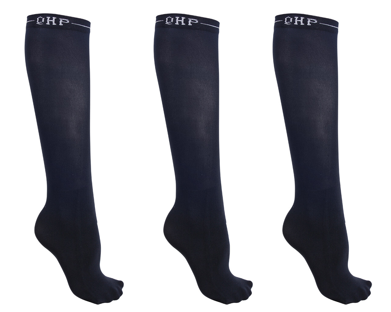 Podkolenky set 3ks. Tyto lehce průsvitné podkolenky jsou ideální pro nošení do vysokých bot. Jsou velmi elastické, tenké a hladké a mají zesílenou patu. Jsou k dispozici v sadě se třemi různými barvami a zabalené v sáčku. Materiál: 100% nylonBarva:  černá (3x černá)             tmavě modrá (3x modrá... celý popis