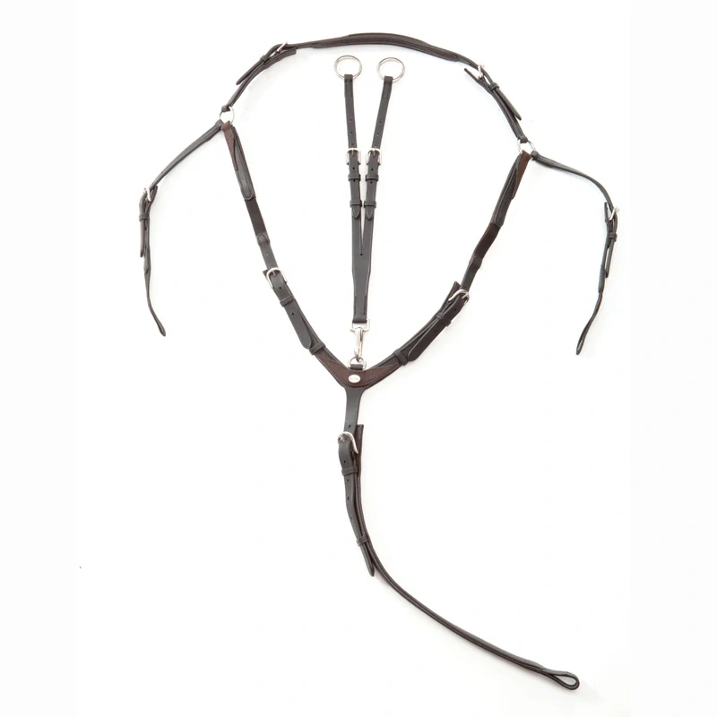- uchycení spodního popruhu se provádí pomocí malého koženého poutka nebo odnímatelné karabiny