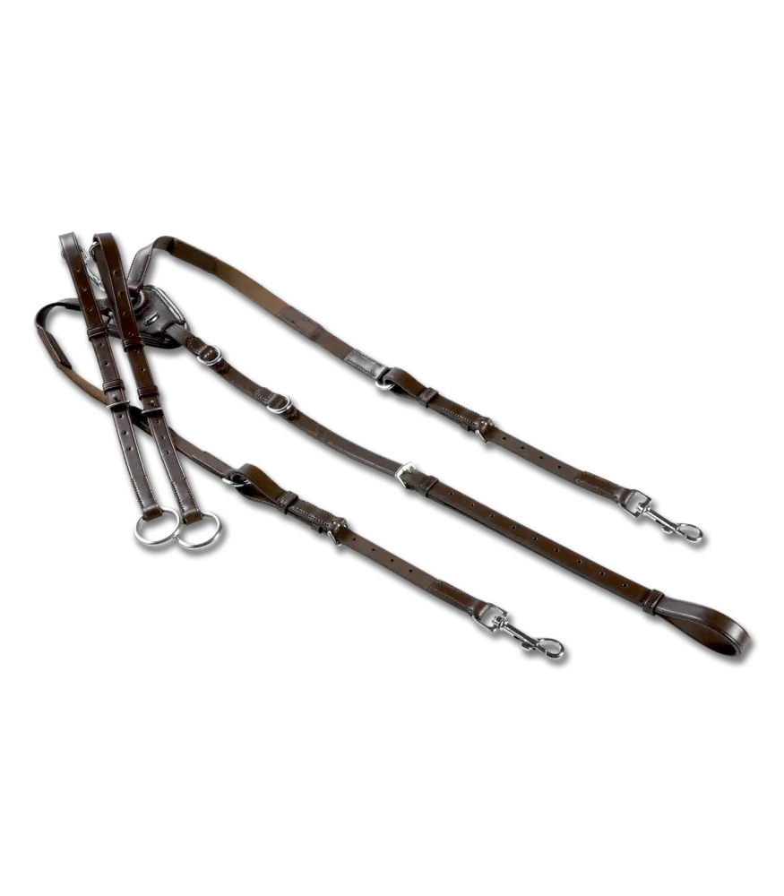 Elegantní poprsník vyrobený z vysoce kvalitní kůže. S přezkami z nerezové oceli, elastickou vložkou na krku a odnímatelnými martingalovými vidlicemi.