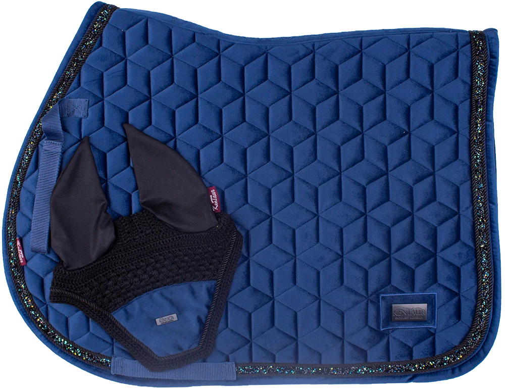 Sametová podsedlová dečka s novým vzorem prošívání v sadě s náušníky. Ozdobný lem s kamínky a
