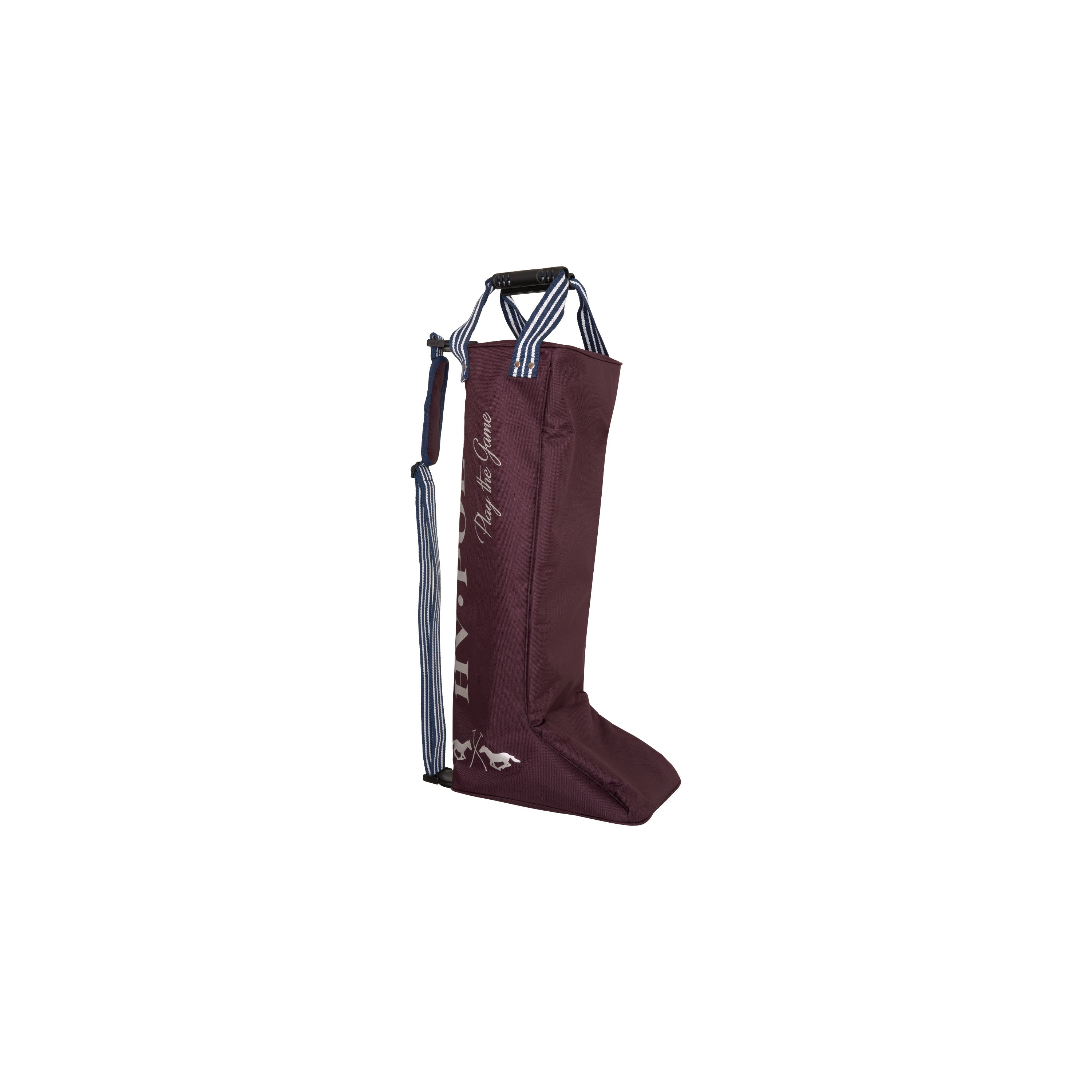 Funkční taška na boty se stříbrným potiskem loga výrobce, která udrží vaše jezdecké boty v bezpečí a čistotě. S poutky nahoře a pruhovaným ramenním popruhem pro snadné přenášení. Vyrobeno z materiálu s PVC povlakem na zadní straně pro voděodolnost.