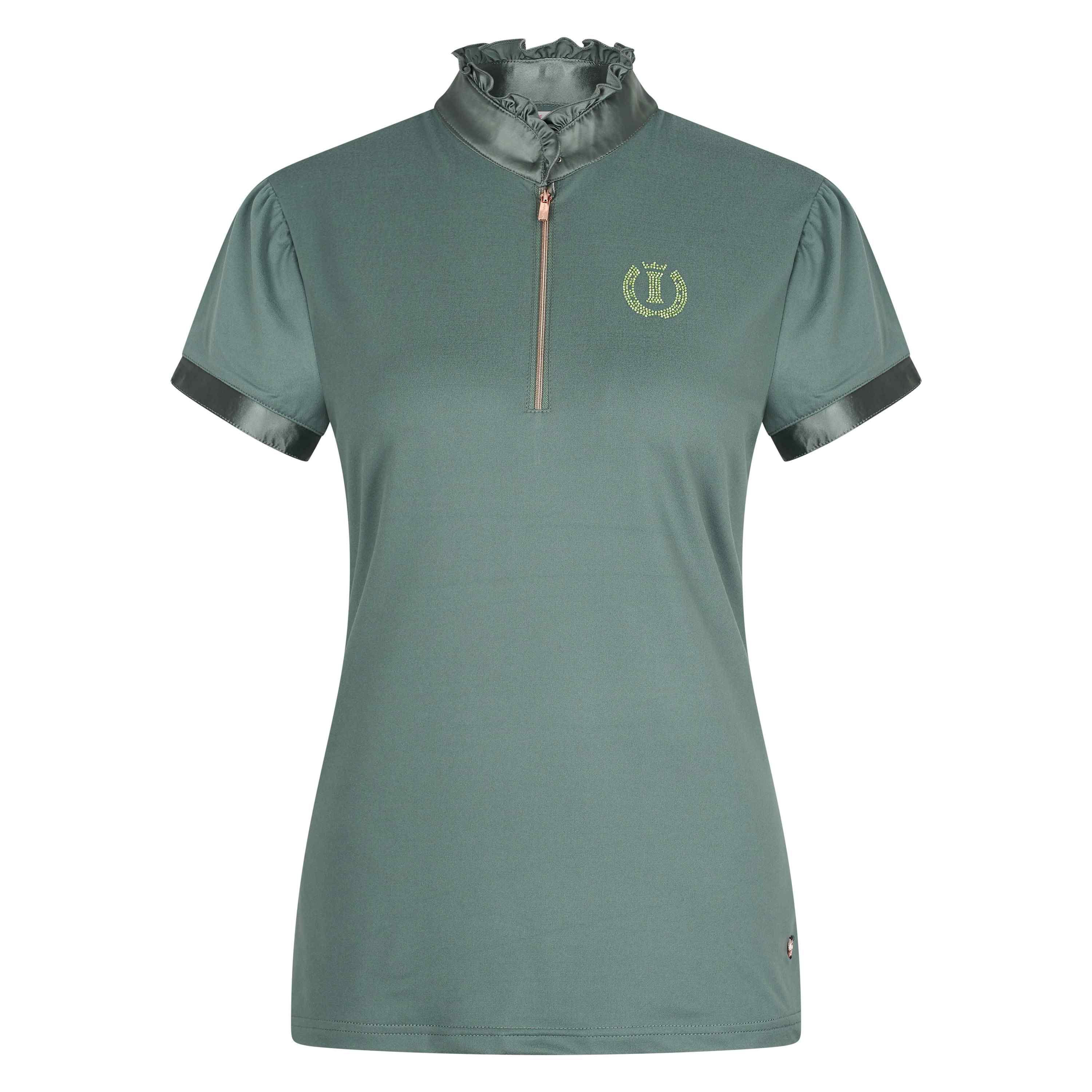 Triko s krátkým rukávem ANNA.- zip ke krku s lesklým saténovým žerzejovým stojáčkem - krátké nabírané rukávy zakončené saténovým lemem s detailem kamínku  - logo s kamínky na hrudiMateriál: 92 % polyester, 8 % spandexBarva: růžová, bílá, Fuchsie, modrá, tmavě šedá, hnědáVelikosti: XS, S, M, L, XL celý popis