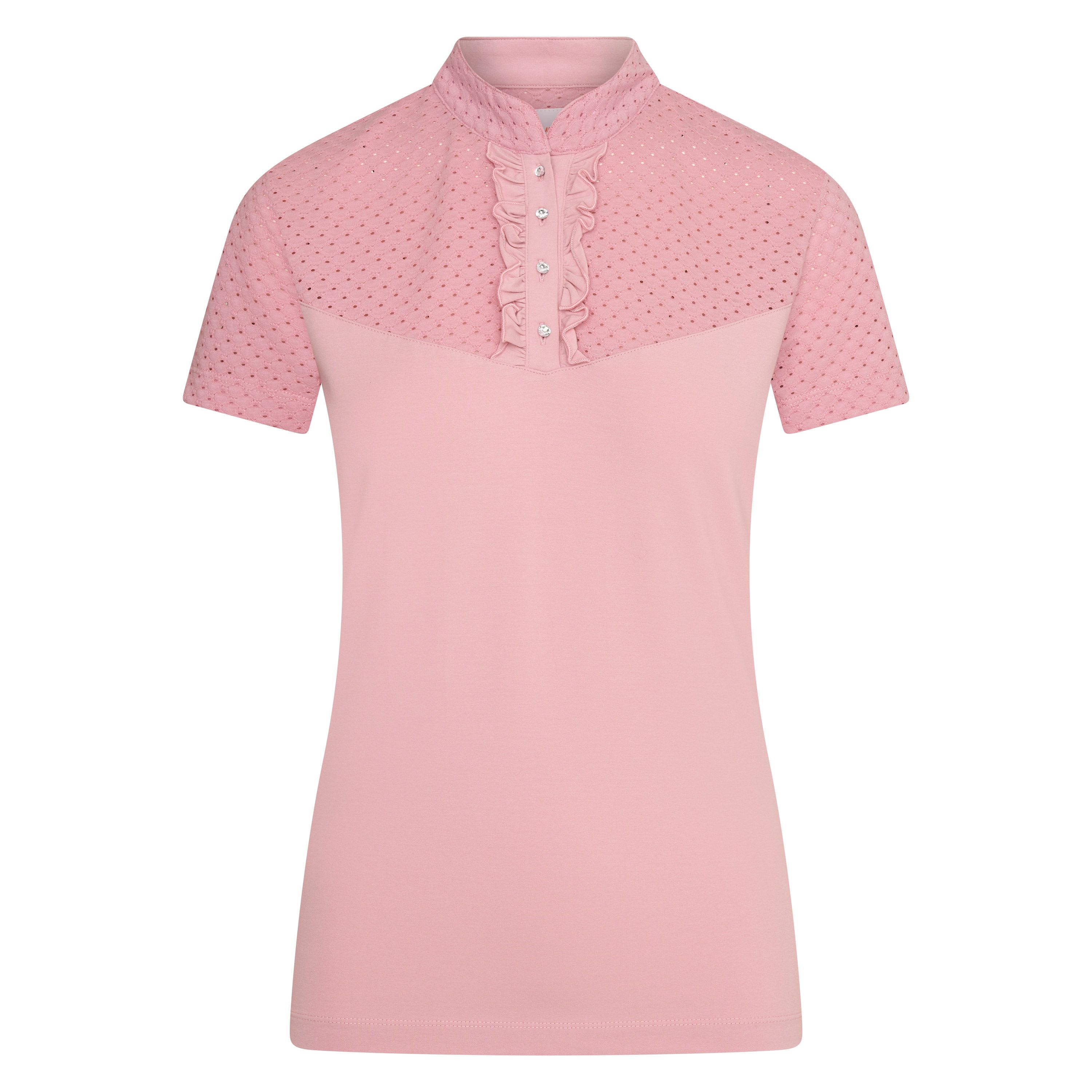 Triko s krátkým rukávem * stojací límeček s volánovým detailem * kamínkové knoflíky pro přední zapínání * detail volánku na předním zapínání * znak IR s logem na rukávu
