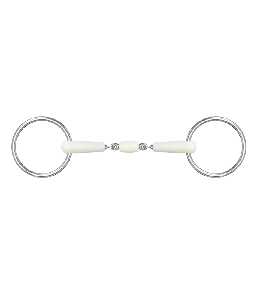 HAPPY MOUTH udidla s jablečnou chutí a vůní. Trvalá jablečná chuť je koňmi s radostí přijímána a stimuluje žvýkací činnost. S hladkým plastovým povrchem a nerezovými kroužky.