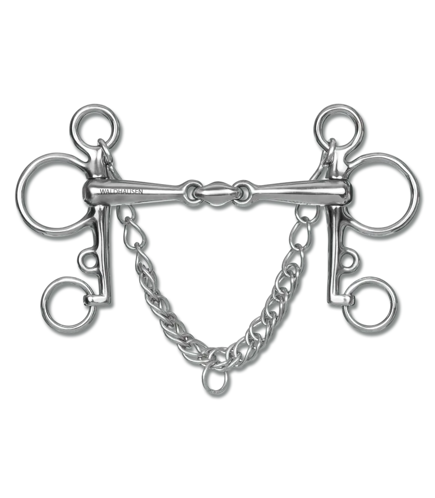 Dvakrát lomené udidlo typu pelham s podbradním řetízkem. Vyrobené z nerezové oceli. Do udidla lze zapnout otěže několika způsoby. Tloušťka udítka je 16 mm.
