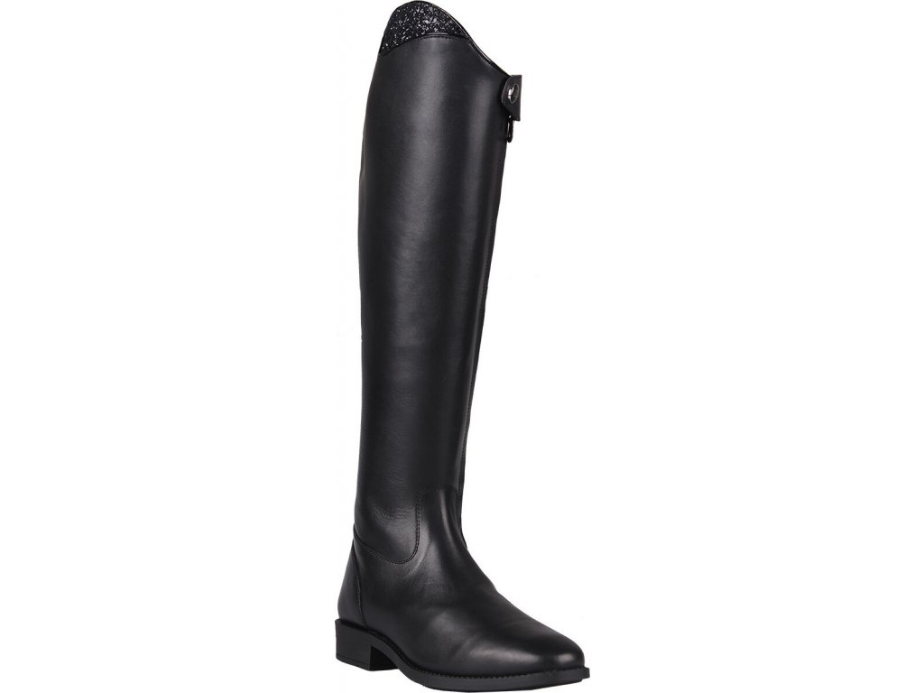 Jezdecké boty poskytují maximální komfort a elegantní vzhled. Vyrobeny jsouz vysoce kvalitní kůže, která je měkká a prodyšná. Opatřeny jsou dlouhým zipem vpředu, pomocí kterého se boty snadno obouvají. Zip je navíc jištěn patentkou a opatřen chráničem, který zabraňuje vniknutí nečistot do zipu. Vybaveny jsou protiskluzovou gumovou podrážkou a elastickou vložkou na zadní straně, pomocí které se boty maximálně přizpůsobí tvaru lýtka. Boty jsou vhodné na intenzivní používání a jsou snadné na údržbu.