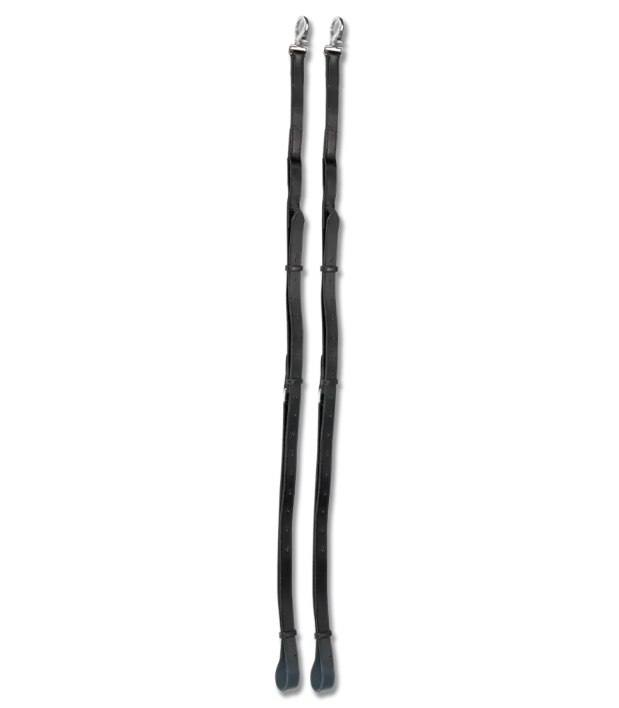Jeden pár robustních kožených vyvazovacích otěží bez gumového kolečka.