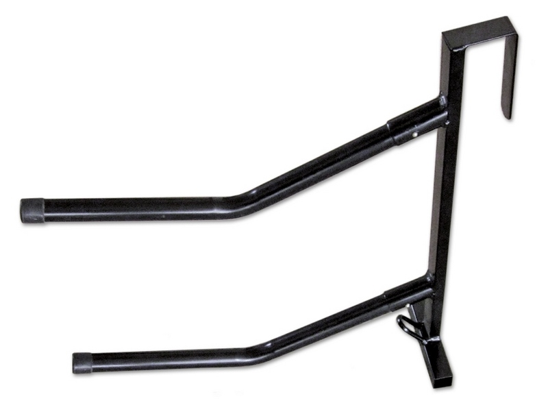 Praktický kovový závěsný držák na sedla. Vhodné k umístění na box či na přepravník při závodech, kde poslouží na odložení sedla, dek či jiného potřebného vybavení. Je vybaven dvěma držáky a háčkem na uzdečky a ohlávky. Délka těla věšáku cca 47 cm.